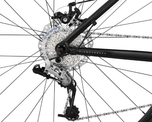 Tree roots, rocks, bumps - whatever is ahead in the trail, the big wheels of the Diamondback Overdrive will keep on rolling. The 29'er butted aluminum frame is paired with an SR Suntour XCT 100mm travel fork . 24 gears controlled by SRAM X-4 shifters and rear derailleur allow you a multitude of gears to choose from and the double wall rims will be sure to keep you going down the trail. When it is time to stop rely on the Tektro Novela mechanical disc brakes. Granted, the Overdrive will not do all the work for you, but it will sure make your job easier.